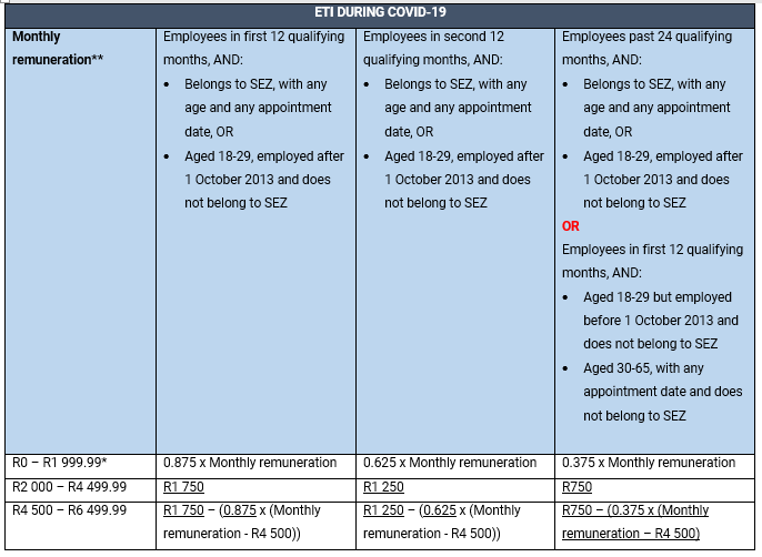 Thus far, two periods of Additional ETI have been implemented by SARS, being 1 April to 31 July 2020 and 1 August to 30 November 2021.